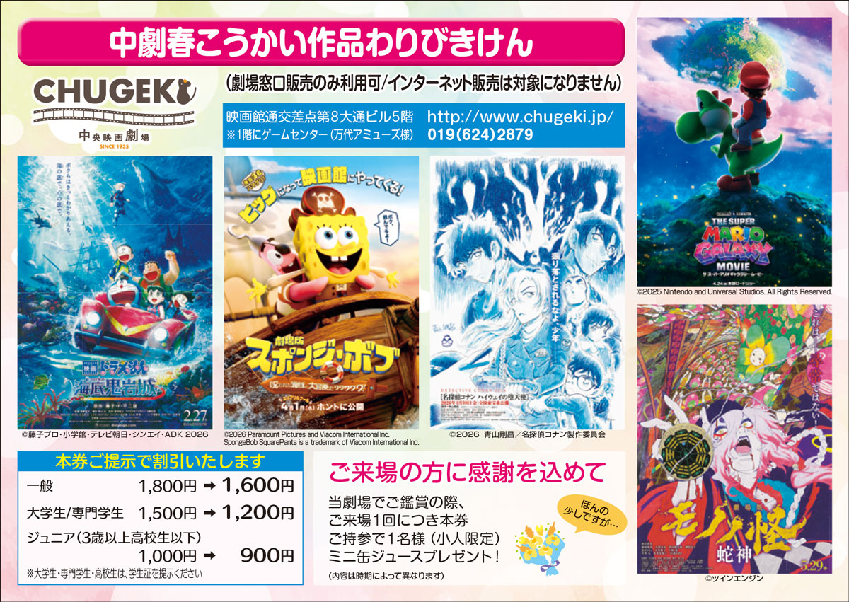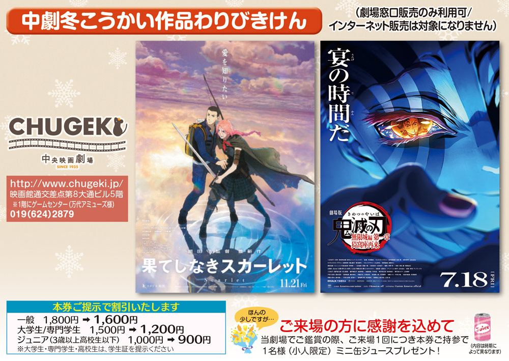 ※サービスデイ(CHUGEKIデイ/シネマウェンズデイなど)のサービス料金の適用あり